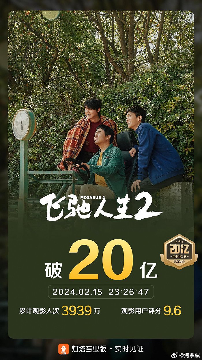 影片《飞驰人生2》票房突破20亿。