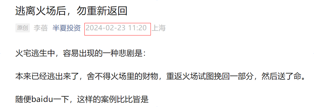 “回想2021年,在中概股的第一波大幅调整中,Bill Hwang因为高杠杆爆仓后,也有很多人冲进去捡了带血筹码。当时短期内,相关股票的确也发生了较大幅度的反弹。可后来呢?这波行情,某些DMA就好像Bill Hwang,因为高杠杆率先牺牲了,不少同志冲进去捡了它们的尸体。未来呢?请重温火灾逃生重要原则:已经逃出火场,切勿重新返回。”李蓓表示。